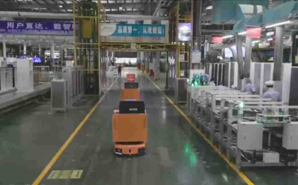 为车载冰箱物流配送打造的智能解决方案,,包含产中物流通过潜伏举升AMR搬运至线边,,产后成品物流智能仓储,,流程包含产中物流智能齐套入库,,,线边安灯叫料AMR智能配送至线边,,,成品入库、、出库,,通过无人堆高车机器人,,,智能仓储管理替代人工作业管理,,实现更高存储、、更高效率、、更具柔性化的解决方案。。。。